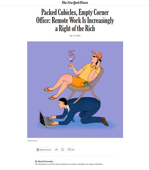 Packed Cubicles, Empty Corner Office: Remote Work Is Increasingly a Right of the Rich – The New York Times